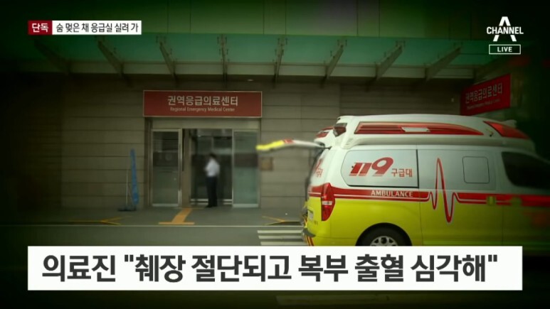 병원에 실려와 숨을 거뒀습니다.