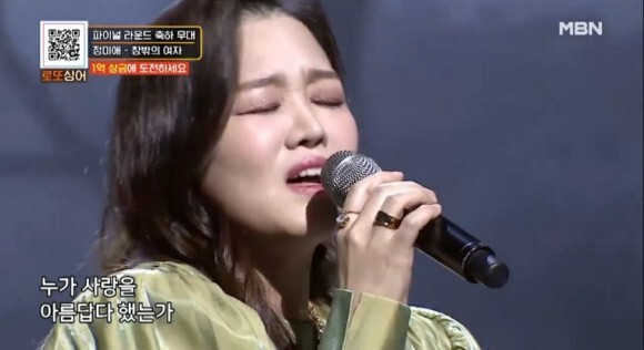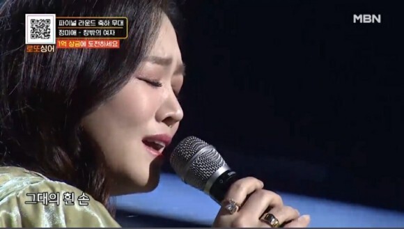 2일 오후 방송된 MBN ‘로또싱어’에 출연한 정미애는 조용필의 ‘창밖의 여자’를 호소력 짙은 목소리로 열창해 심사위원들의 심금을 울렸습니다.
