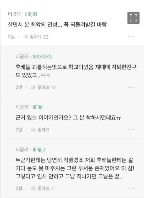 이어 "이 일로 A씨와 그의 친구들은 전 학년이 모인 곳에서 공개사과를 했는데, 그 이후로도 후배에 대한 괴롭힘은 더 심해졌다"고 전했다.