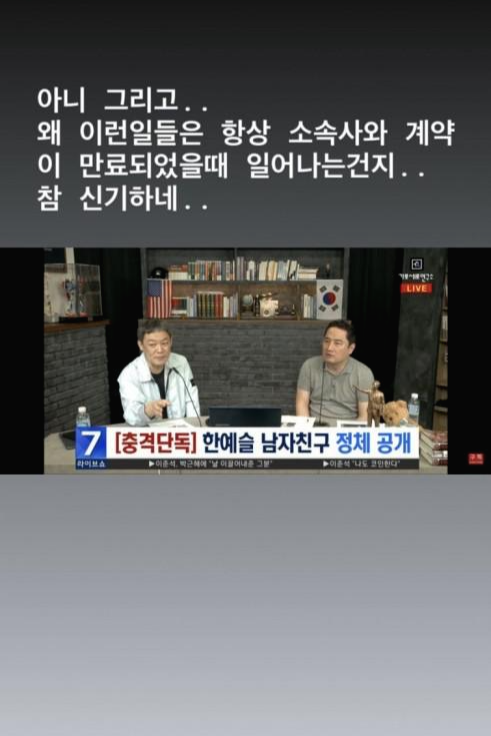 이어 "아니 그리고 왜 이런 일들은 항상 소속사와 계약이 만료되었을 때 일어나는 건지. 참 신기하네"라고 덧붙였습니다.