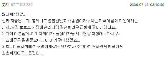그런데 안타까운 것은, 홍리나가 결혼을 한 다음에 미국의 교포 사이에서 홍리나 남편 배종원에 대하여 흘러나온 여러가지 안 좋은 소문들이었죠.