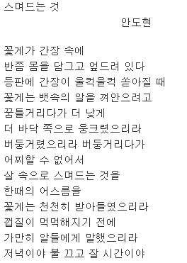 (흔히 간장게장이라는 이름으로 잘못 알려졌는데, 실제 제목은 '스며드는 것(안도현 시인)'입니다.)