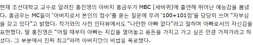 평소 아빠를 존경한다고 하던 홍진경은