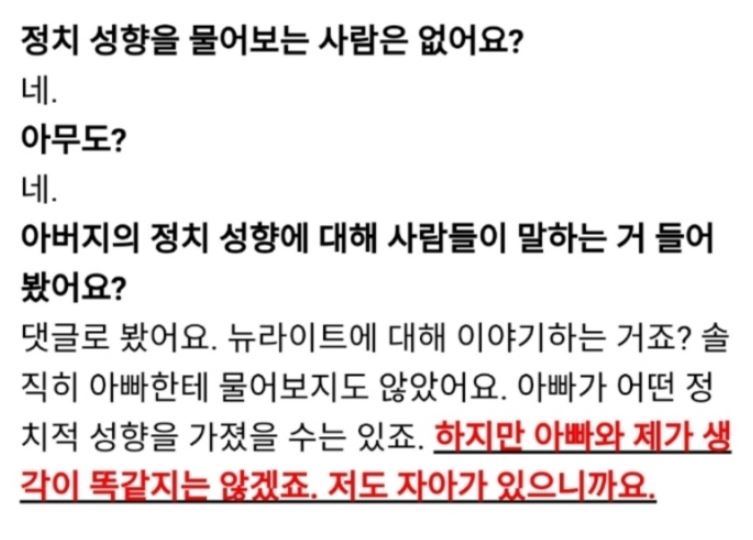 아빠의 내역이 나오며 아빠가 뉴라이트라는 것만으로 논란이 되었는데....