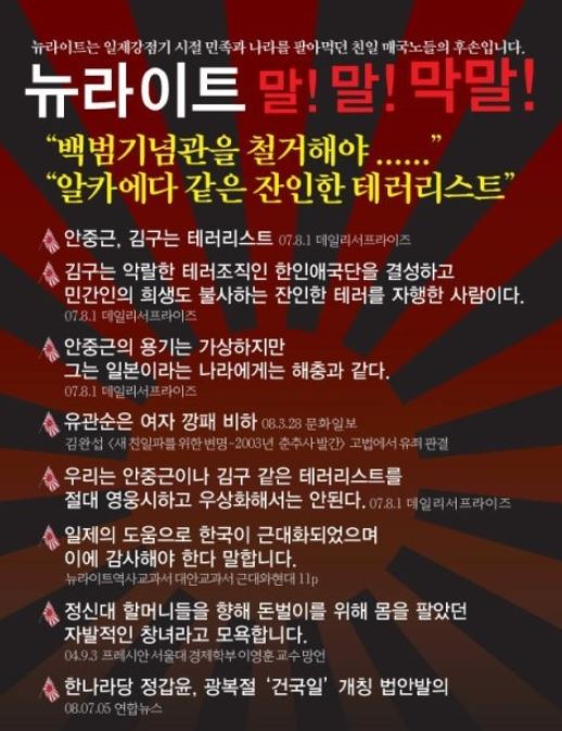 뉴라이트라는 단체가 이 나라에 존재하는 것 자체만으로 말도 안 되는데