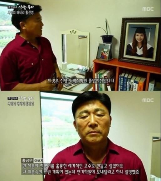 홍진영 아빠인 홍금우 교수는 예전 홍진영과 방송에 나와서 자기 스스로 자기는 100점 만점에 101점이라고 평가했었지요.