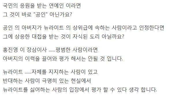 홍진영의 아빠가 뉴라이트인 것이지 홍진영이 잘못한거는 없습니다.