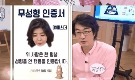 홍혜걸이 여에스더가 성형을 안했다고 인증사진도 공개하고,