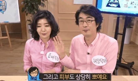 여에스더는 “아버님은 피부가 이렇게 좋은데 왜 혜걸씨는 처지는 피부일까요?”라고 말했고, 이에 홍혜걸은 “우리 엄마처럼 온순한 아내와 살아서 그렇다. 나는 네가 갱년기 짜증내니까 흰 머리가 나고 그런 것”이라고 말했습니다.