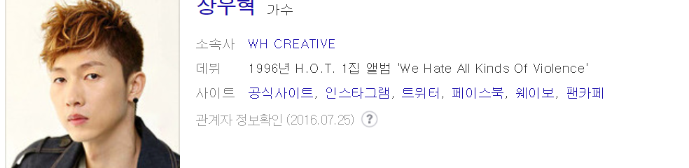 장우혁은 1세대 아이돌인 H.O.T.의 멤버입니다.