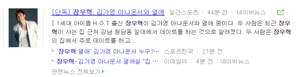9월 1일 일간스포츠에서는 장우혁의 열애설을 단독보도했는데요.