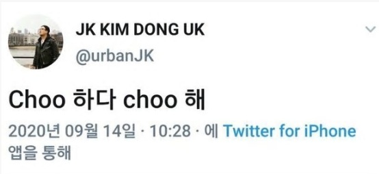 지난 14일 JK김동욱 트위터에 “Choo하다 Choo해”라는 글을 올렸다. 아무런 설명이 붙지 않은 짧은 문장이었지만, JK김동욱이 추미애 법무부 장관 아들의 병역 특혜 의혹을 비판한 글로 풀이되며 논란이 불거졌다.