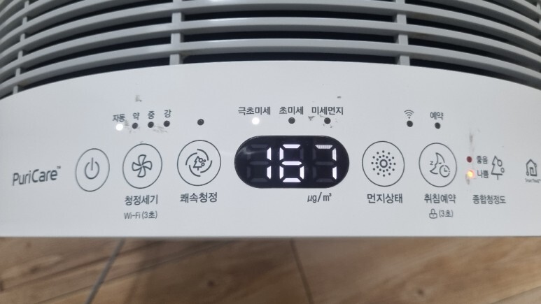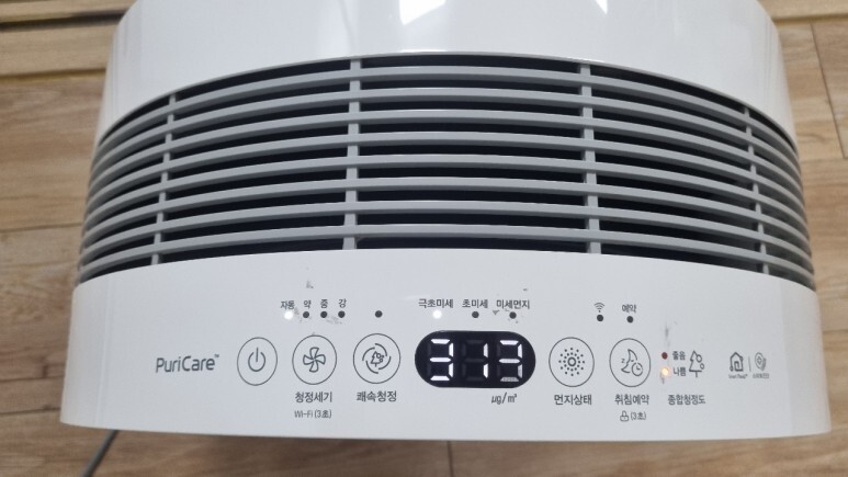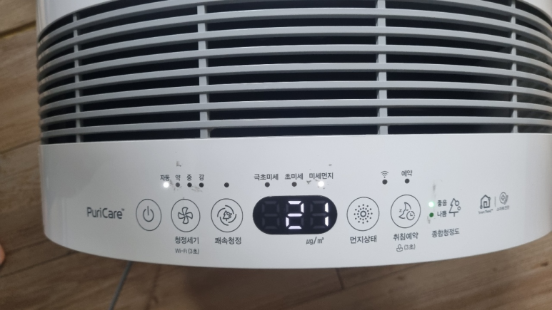 그리고 아래 디스플레이에 미세먼지 농도가 숫자로 표시되기 때문에 미세먼지 양이 어느 수준인지 보기 편합니다.