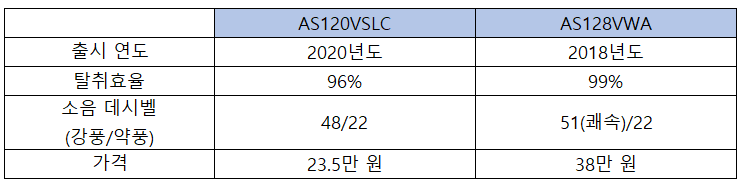 탈취 효율도 비슷하고 소음 데시벨도 비슷한 정도라서 아래 제품의 가성비 좋지 않을까 합니다.