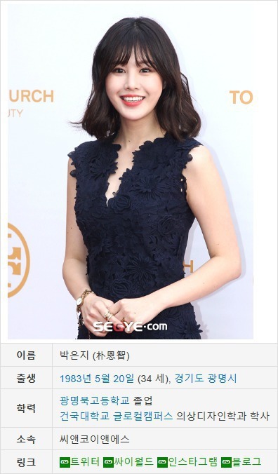 박은지 나이는 83년생으로 올해 36세. 경기도 광명시에서 태어났고, 최종 학력은 건국대학교 의상대자인학과 학사.