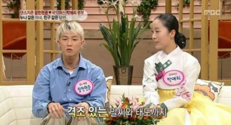 박애리는 <35살이 돼도 결혼해야겠다는 생각을 못했는데 팝핀현준을 만난 순간 결혼해야겠다고 생각했다>, <보통 예술하는 여자는 예술을 안 하는 남자를 만나야 든든하지 않을가 생각하는데 난 팝핀현준이 커다란 산 이상 우주처럼 느껴졌다>며 남편에 대한 칭찬을 아끼지 않았습니다.